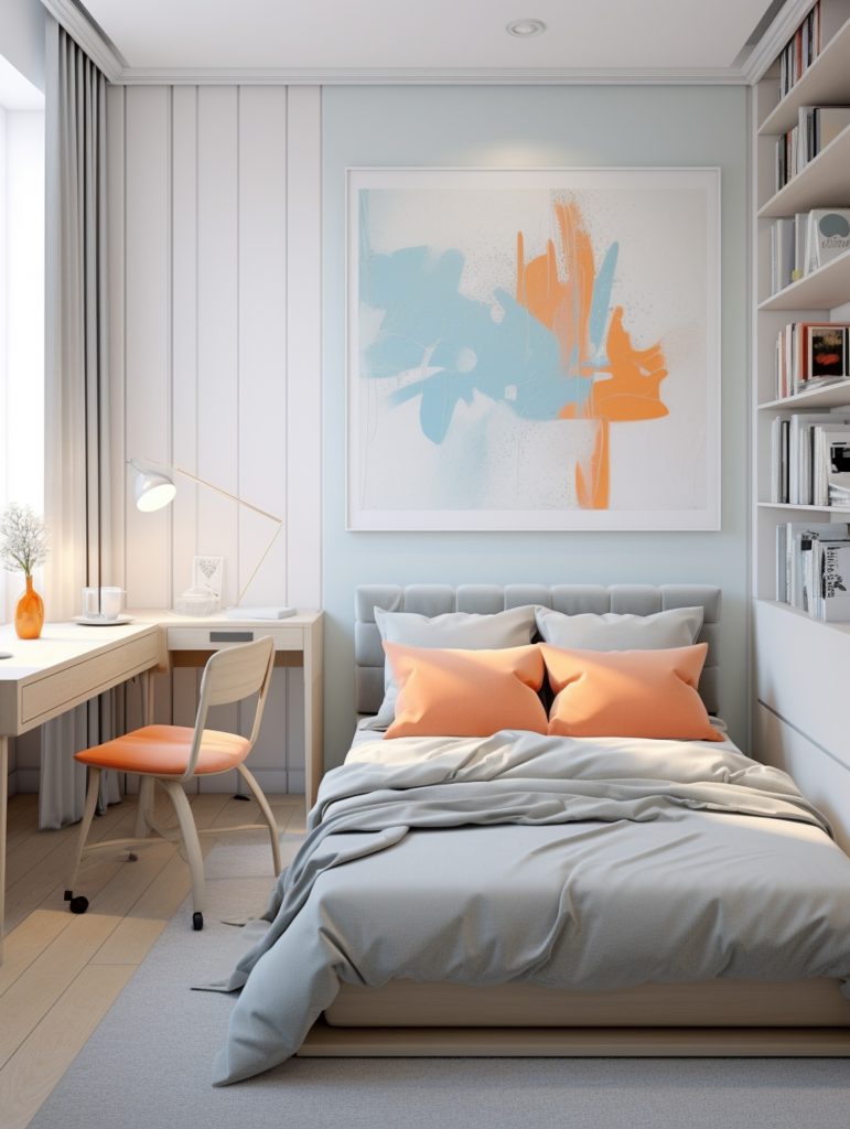 Optimize space with under-bed storage, floating shelves, or built-in wardrobes. A clutter-free room feels larger, calmer, and more inviting.