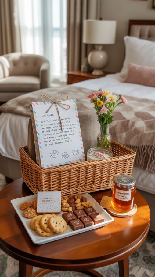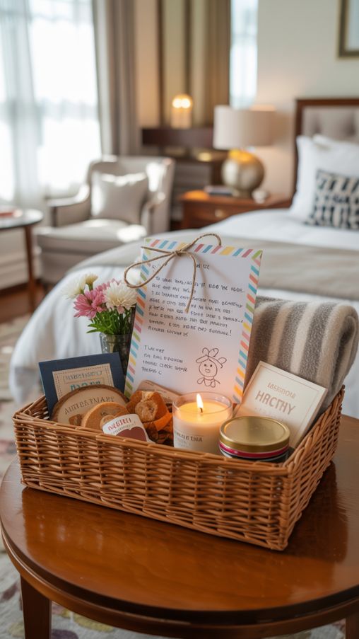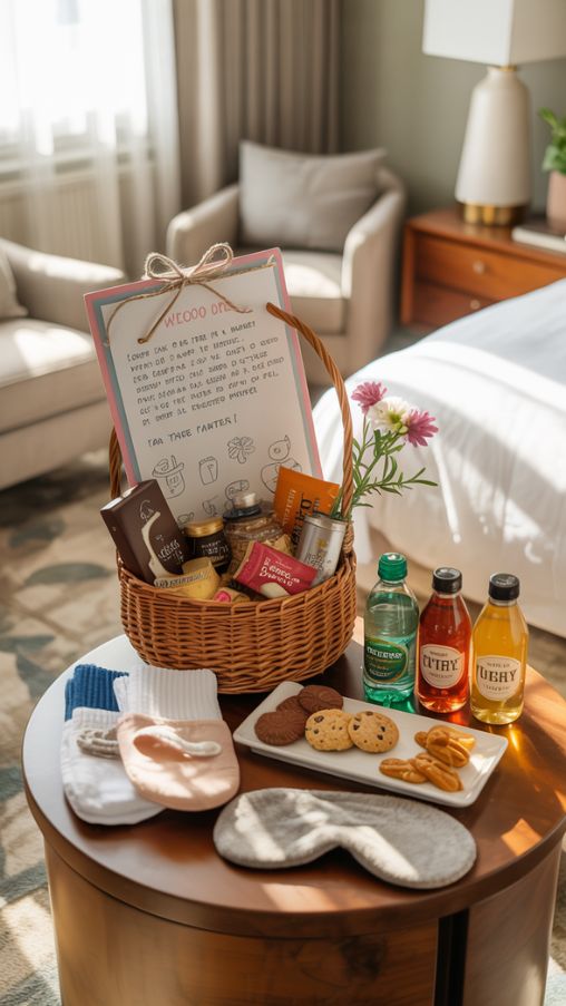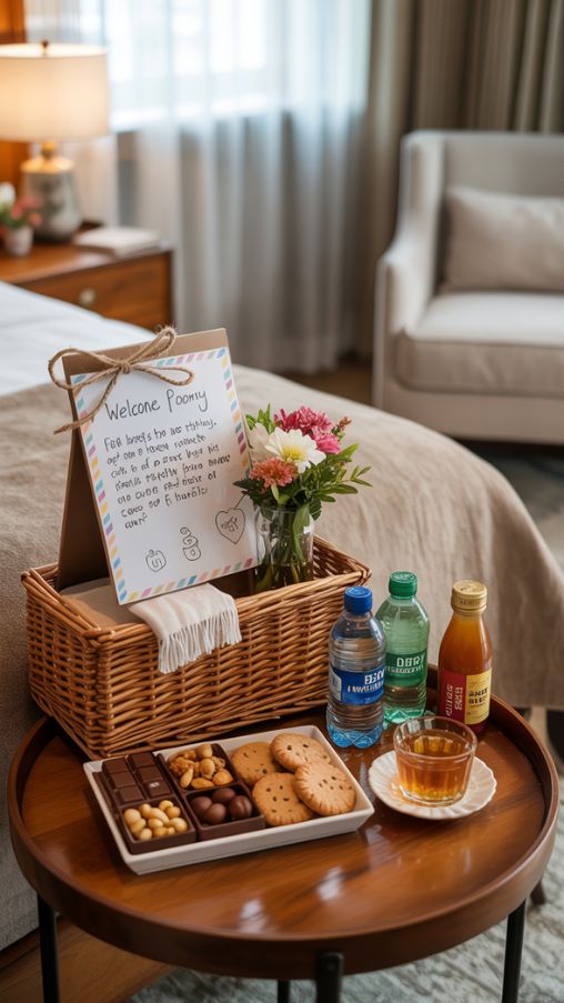 Think initialed towels, a favorite candy, or something tailored to the guest’s hobbies—small touches that make a big difference.