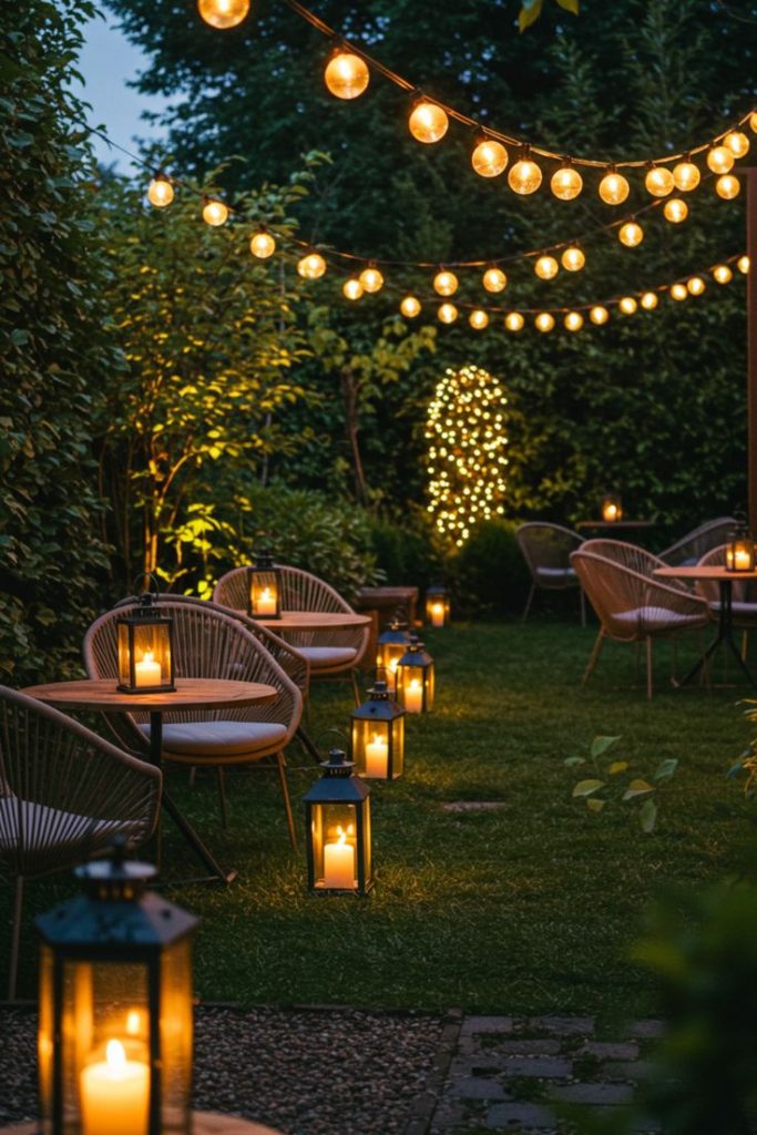 String lights can also be used creatively with décor elements. Placing them inside lanterns, glass jars, or woven baskets adds texture and charm. Combining string lights with candles, outdoor rugs, and cushions enhances the cozy factor and creates a layered, welcoming look.