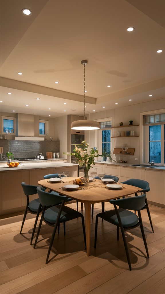 Combine pendant lights, sconces, and under-cabinet lighting to create depth and versatility.