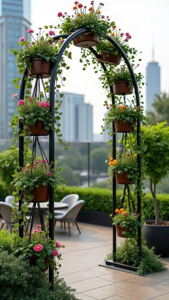 Trellises filled with climbing sweet peas, clematis, or runner beans bring height and movement. Vertical elements create drama and help maximize small garden spaces.