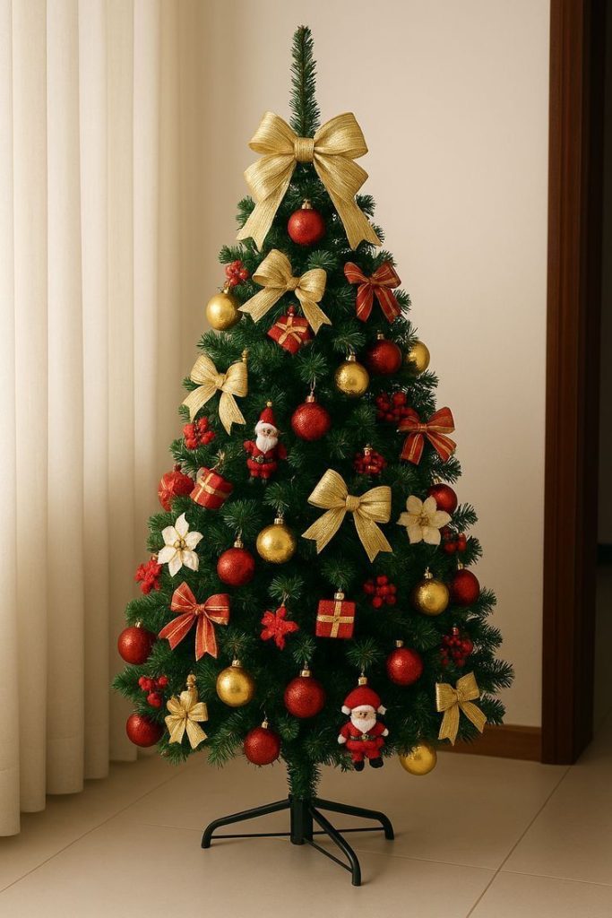 As you decorate, step back frequently to check balance and spacing. Ensure colors and ornaments are evenly distributed and that no single area feels overcrowded. A well-balanced tree feels calm, elegant, and visually pleasing from every angle.