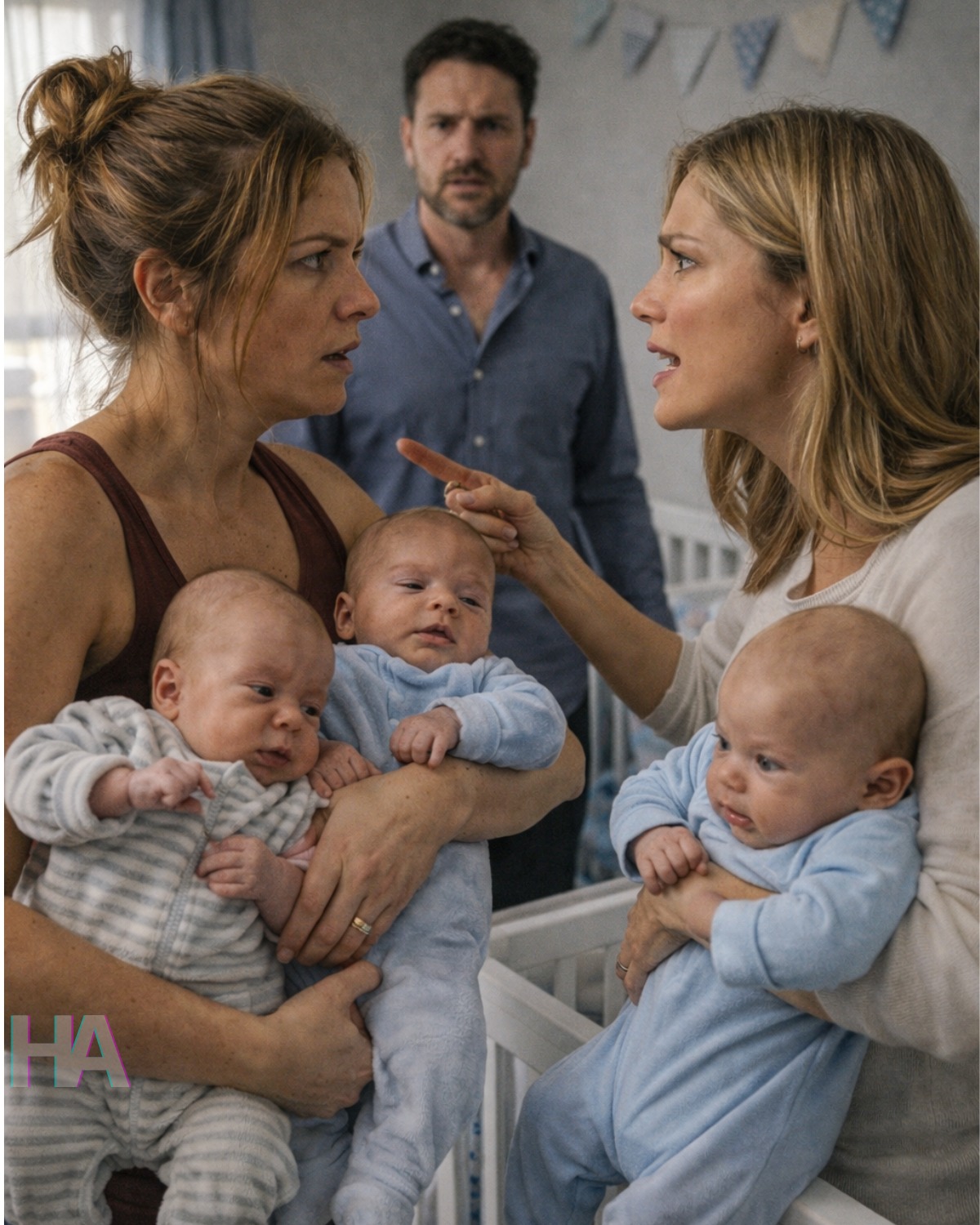 That would have been too easy, and nothing about this story had been easy. There were days when your jealousy still flashed unexpectedly, absurd and human. Days when her wedding ring, not yet removed because divorce moves on paper slower than pain moves through the body, caught the light and reminded you of old hierarchies you had not chosen. Days when she looked at the babies too long and some primitive part of you stiffened, guarding. But there were also mornings when she arrived with coffee and bagels before sunrise, afternoons when you both fell asleep upright against the couch while the triplets napped in their bassinets like three tiny judges, and nights when shared exhaustion made rivalry feel too expensive to maintain.