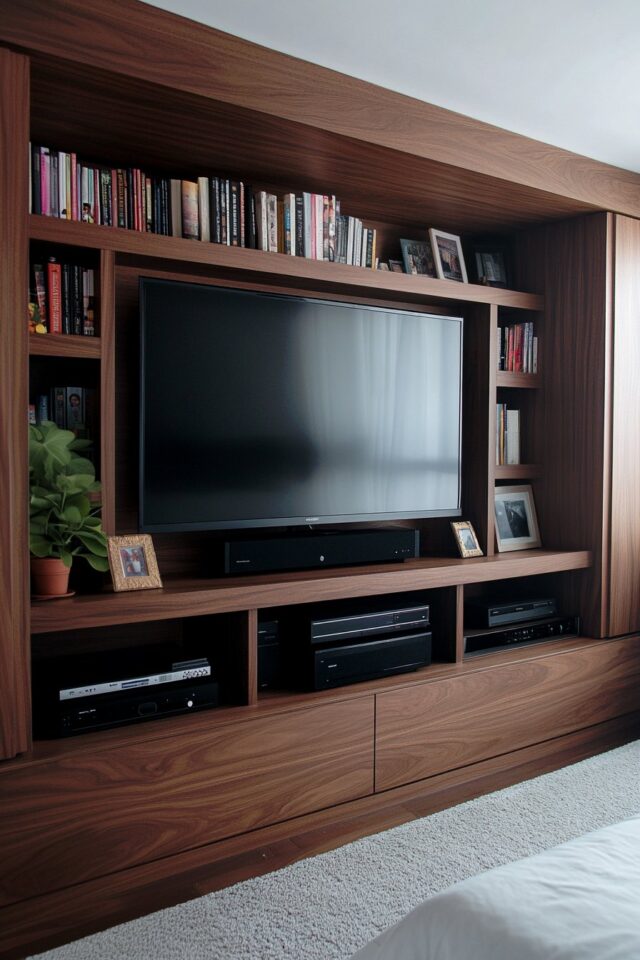 Built-in shelves provide a seamless, custom look. They’re perfect for framing a bed, window, or reading nook, creating a cozy and intentional design.
