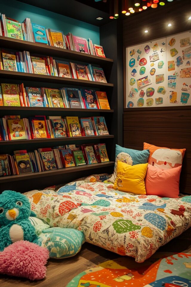Create a dedicated reading corner with a small bookshelf, comfortable chair, and warm lighting. This setup turns your bedroom into a peaceful escape.