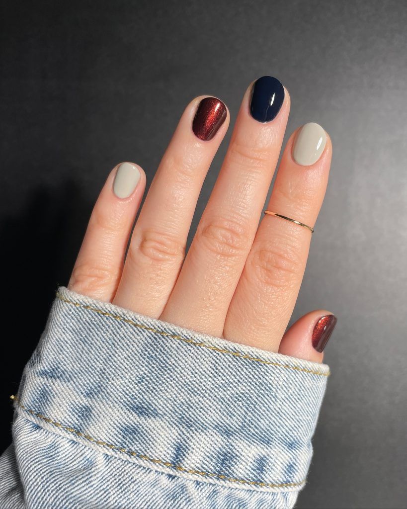 Another standout trend is the rise of colorful winter designs. Instead of sticking to traditional deep winter colors, many are embracing brighter shades that bring warmth to the colder months. Think pastel blues mixed with lilac, muted mustard yellow paired with taupe, or rich jewel tones like emerald and amethyst. Color-block accents, micro–French tips, and abstract patterns are trending, giving short nails a modern, artistic edge. For those who enjoy a pop of personality without going over the top, colorful geometric shapes and multi-tone gradients are the perfect stylish compromise.