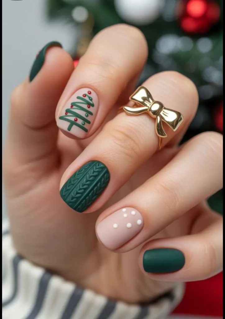 One of the most popular themes for winter 2025–2026 is cute Christmas-inspired nail art. These designs range from playful to refined, blending holiday charm with modern aesthetics. Tiny snowflakes, mini candy canes, Santa hats, Christmas trees, and soft glitter accents are perfect for short nails because they allow for intricate detail without feeling overwhelming. Soft reds, pine greens, silvers, and snowy whites dominate the palette, offering a festive touch that pairs beautifully with cozy winter outfits. Minimalist Christmas nail art is especially in style this season, proving that even the smallest details can make a big impact.