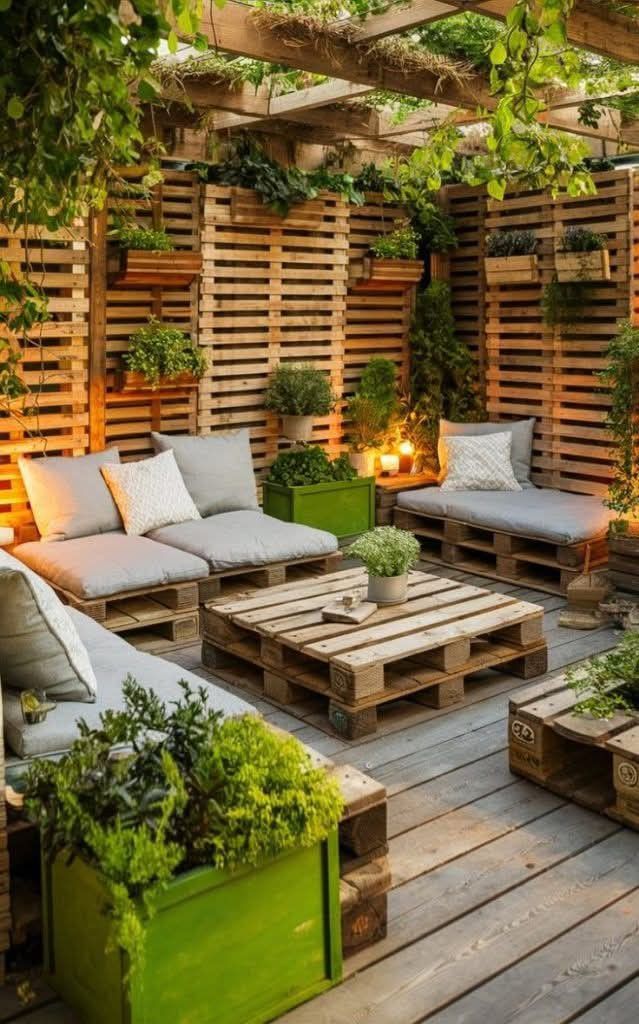 Wooden benches and pallet seating create inviting spaces for socializing and relaxation. In gardens, they can frame pathways, highlight flower beds, or provide comfortable spots to enjoy the outdoors. On patios or decks, pallet sofas and lounge areas encourage gatherings, offering a casual, cozy atmosphere that complements natural surroundings.